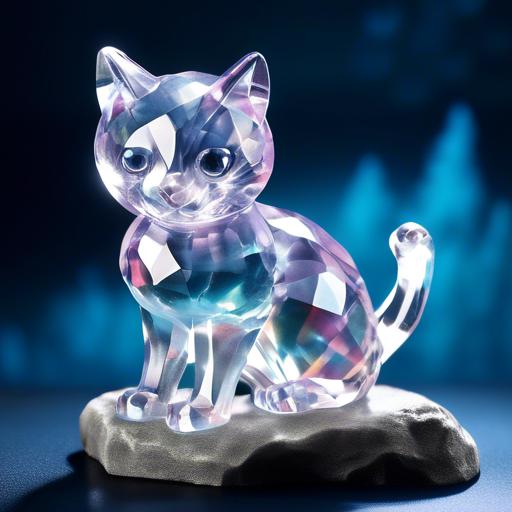 The crystal cat carries a sense of mysticism and spirituality, with its crystalline form reflecting light and casting enchanting shadows. It embodies the idea of tapping into one’s inner spirituality and connecting with the mystical forces of the universe.